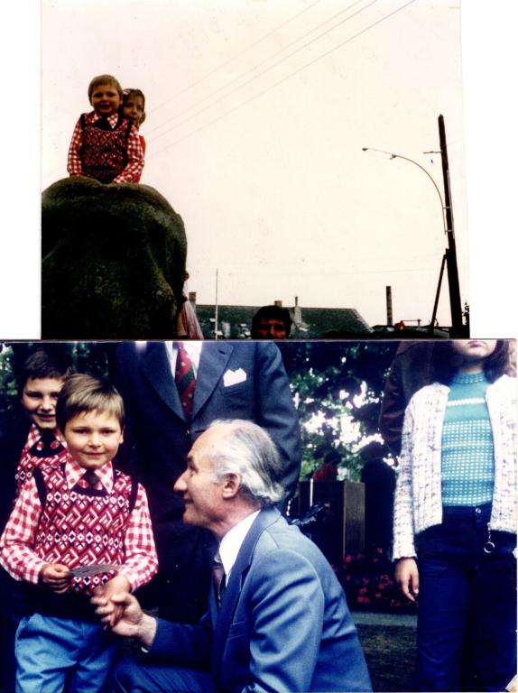 Dr. Heinz Horny mit Andreas Knoll. Anlässlich der 1.Mai Feier 1976 oder 1978 hat Franz Knoll (Gründungsmitglied Verein) vom derzeit gastierenden Zirkus in Mödling die Elefanten organisiert.