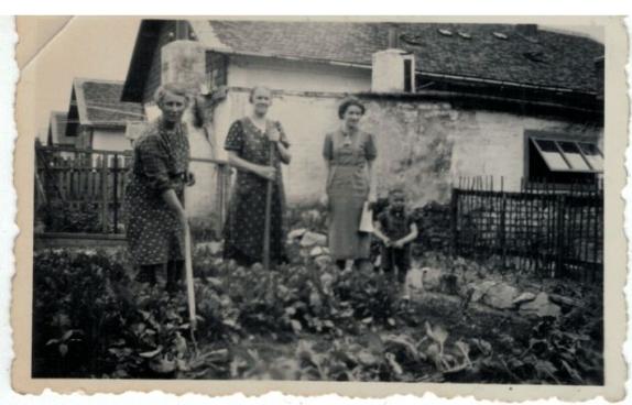 2.Reihe vl.: 3te Margarete Haberhanns Hartigtgtr. 25, Fr. Haberhanns aus Wien auf Besuch, Therese Zottl Hartigstraße 33 (Gattin v. Josef Zottl), Hr. Hanler?