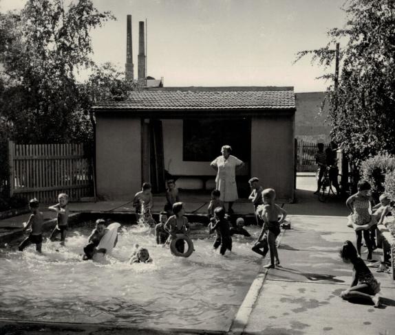 Das Kinderfreibad am Gelände des damaligen Spielplatz in der Hartigstraße 11 musste der 1934 errichteten Notkirche - Marienkirche (Pater Kienast) weichen.