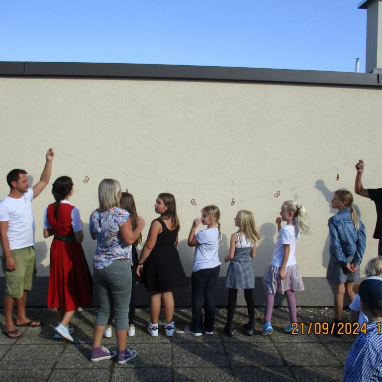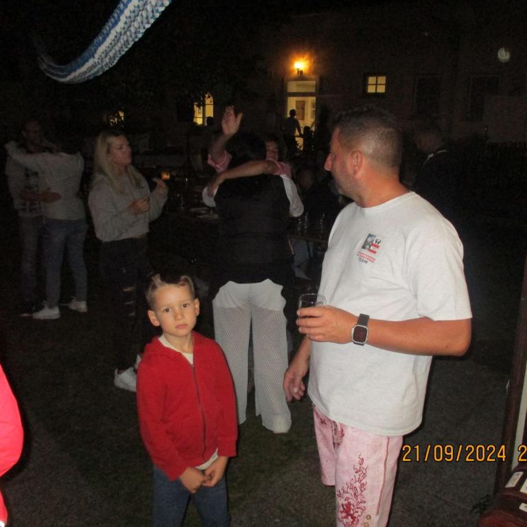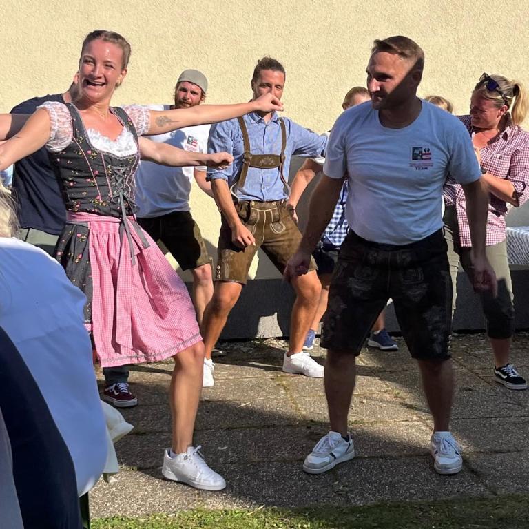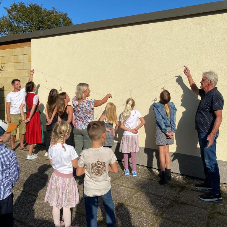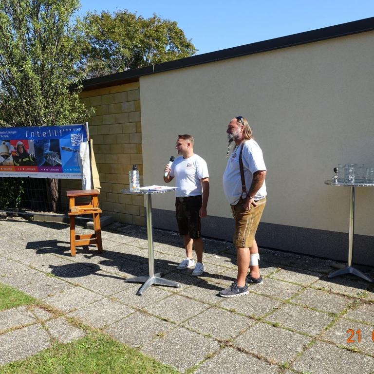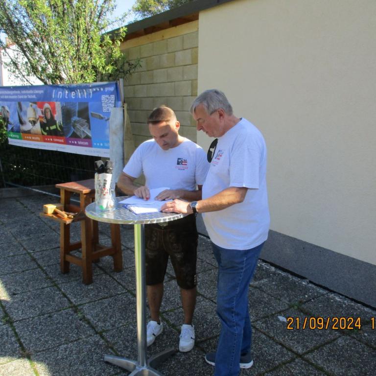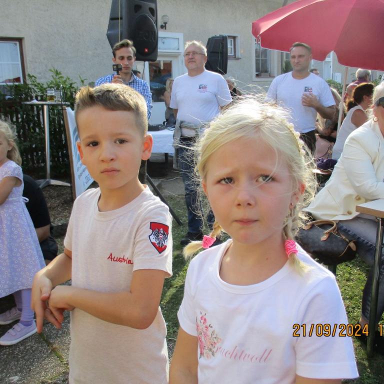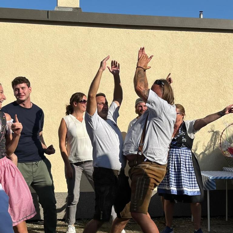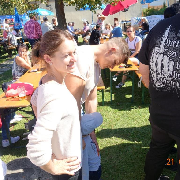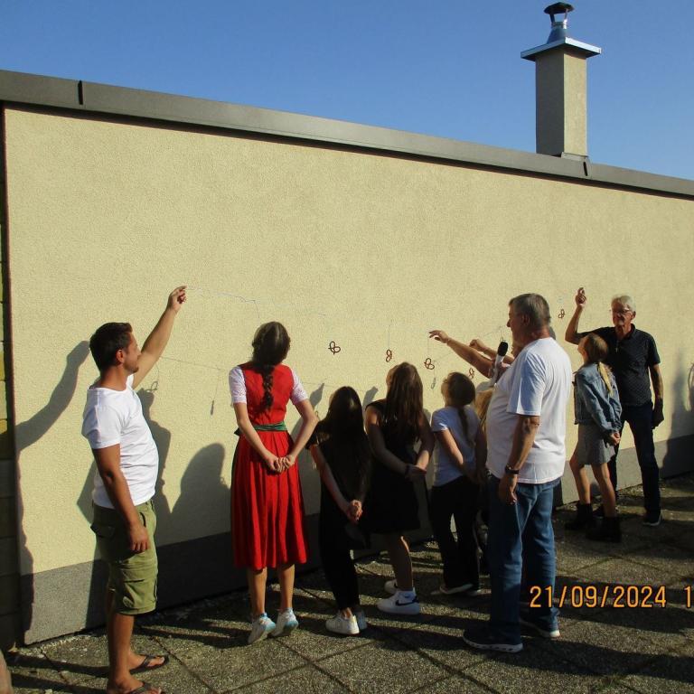 Die anderen Gäste konnten sich beim Hackstocknageln messen. Auch die Kinder kamen nicht zu kurz. Dosenschießen und Brezenwettbewerb war beliebt.