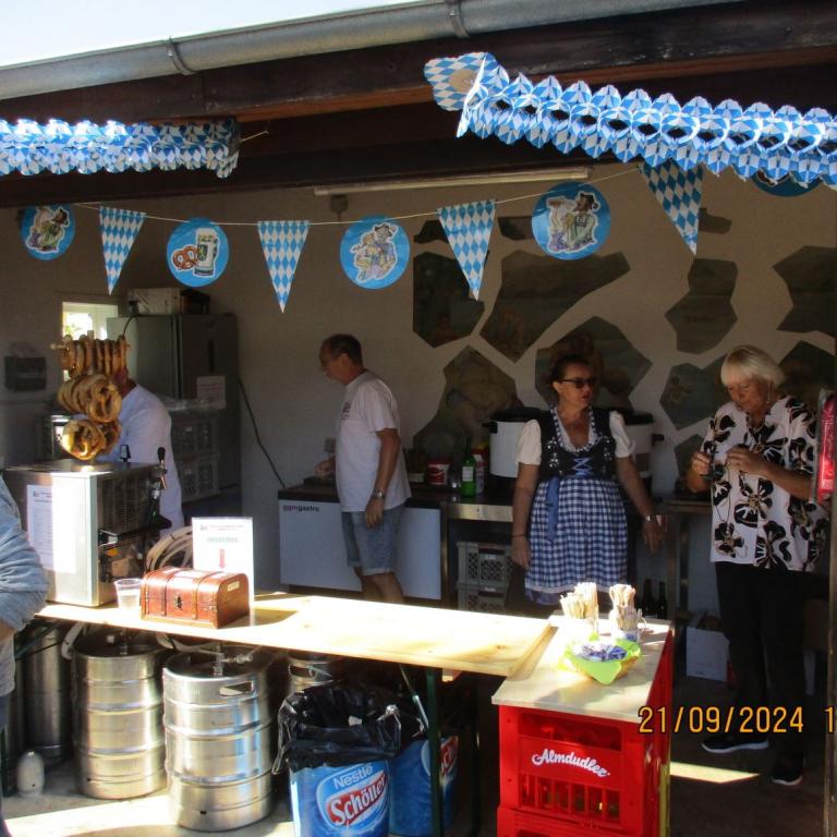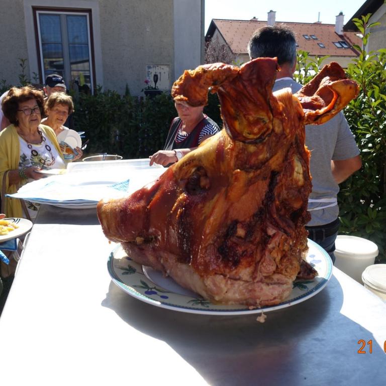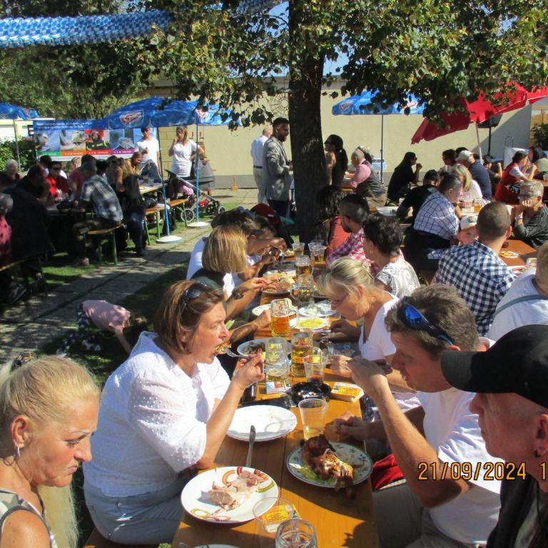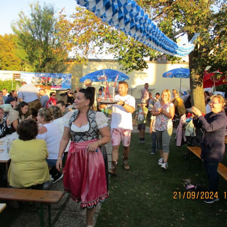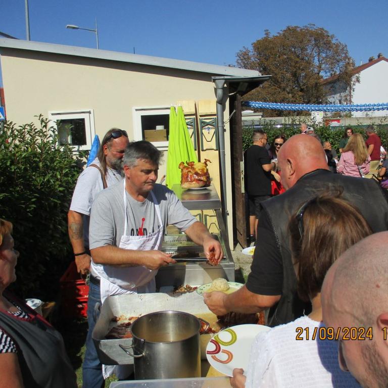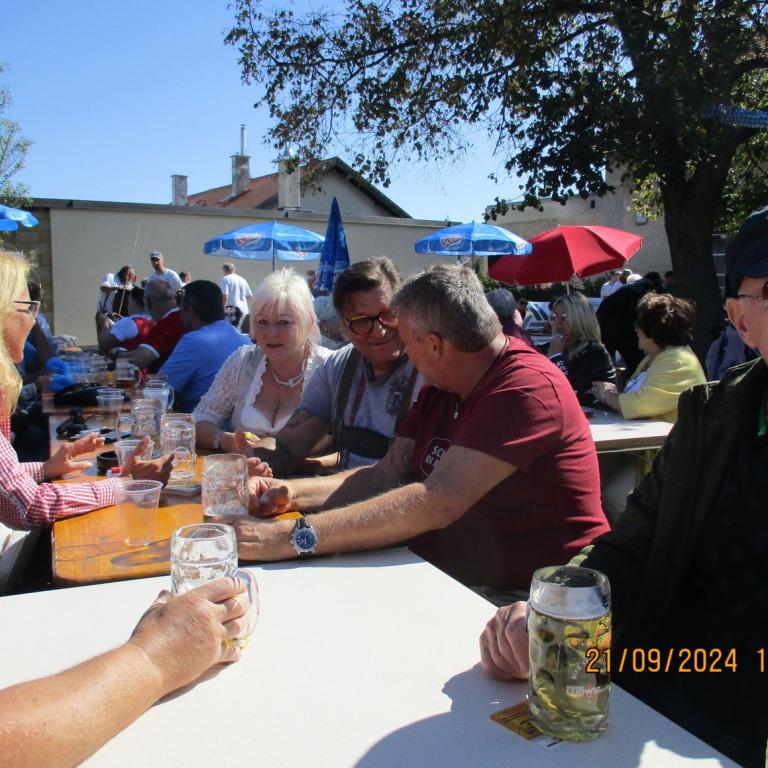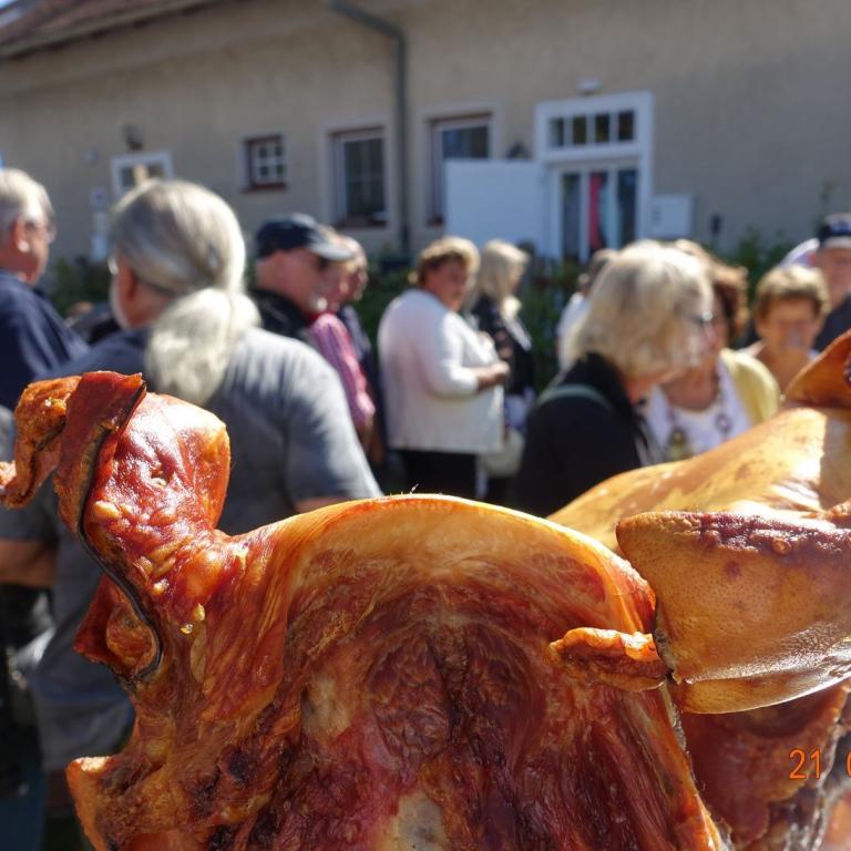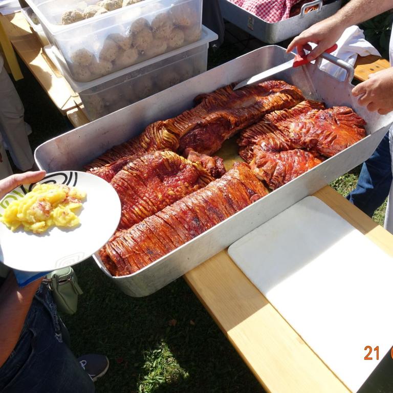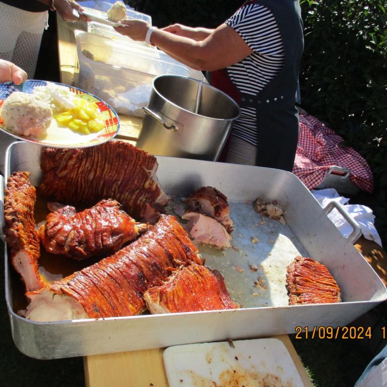Nach der Eröffnung und dem Fassanschlagen haben sich unsere Gäste bei dem umfangreichen Mittagsmenü mit Spanferkel, Sauerkraut und Knödel sowie Grillhendl gelabt.