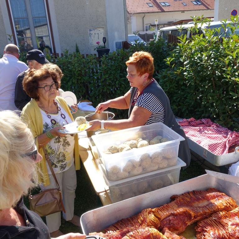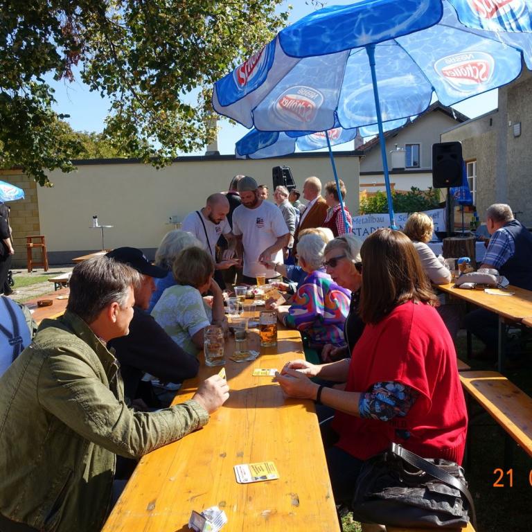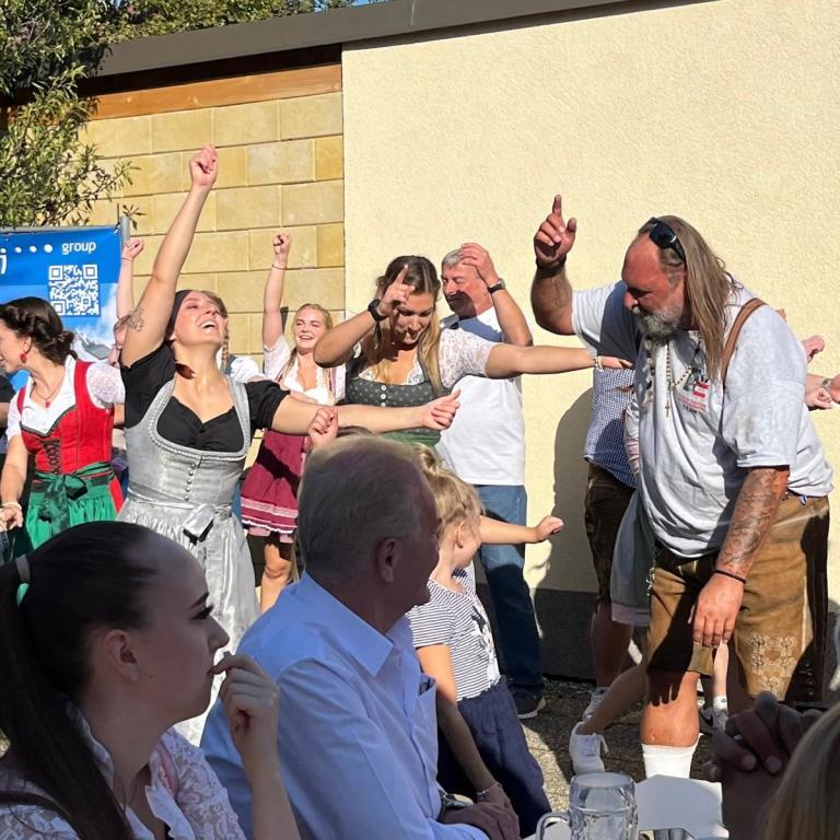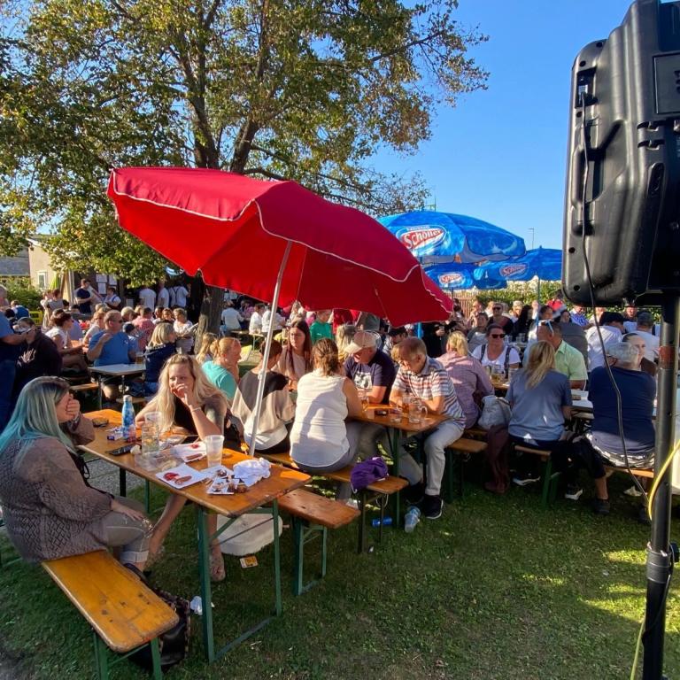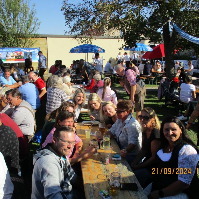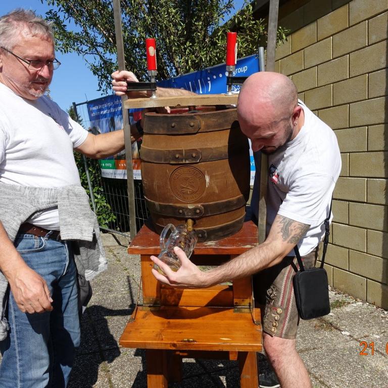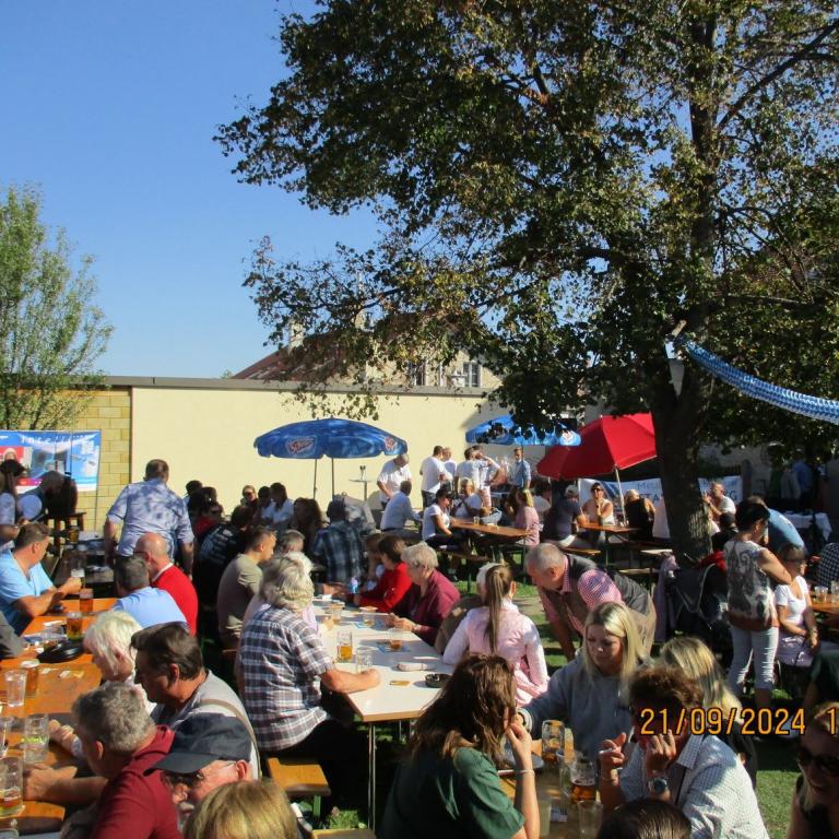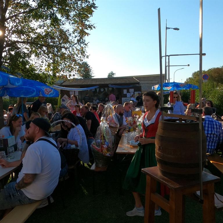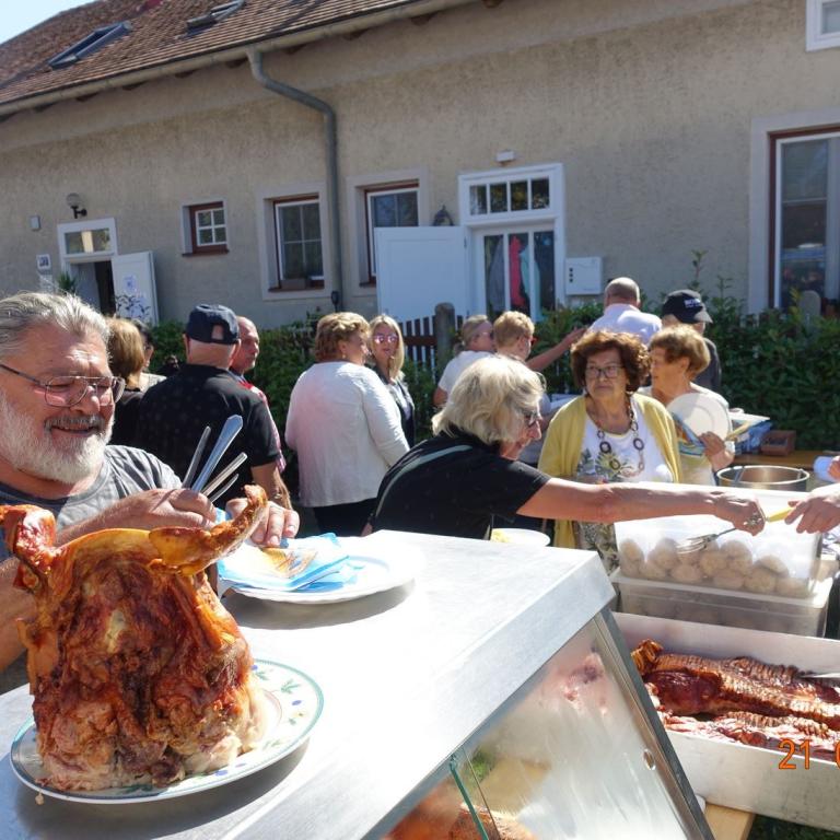 Nach der Eröffnung und dem Fassanschlagen haben sich unsere Gäste bei dem umfangreichen Mittagsmenü mit Spanferkel, Sauerkraut und Knödel sowie Grillhendl gelabt.