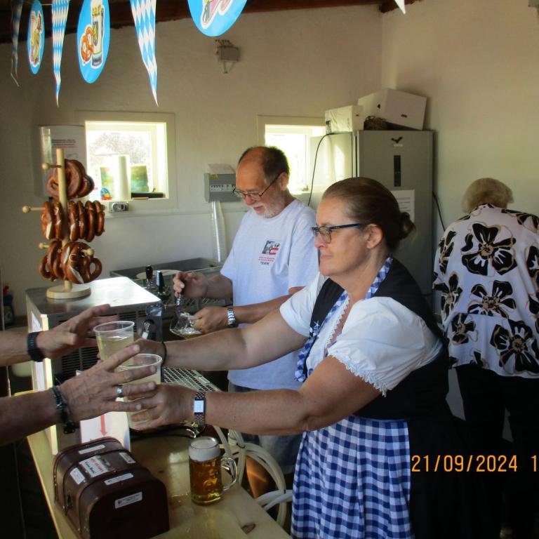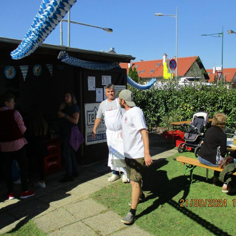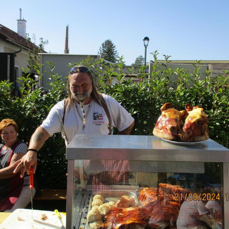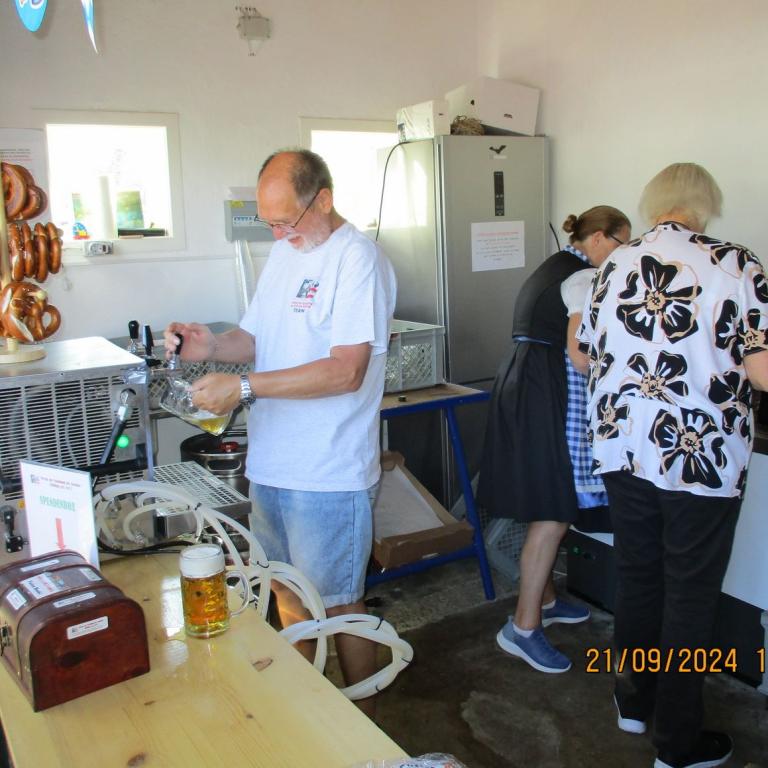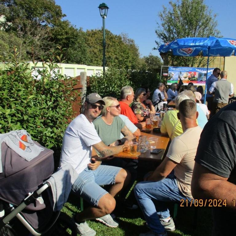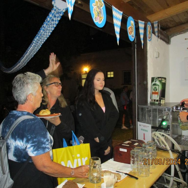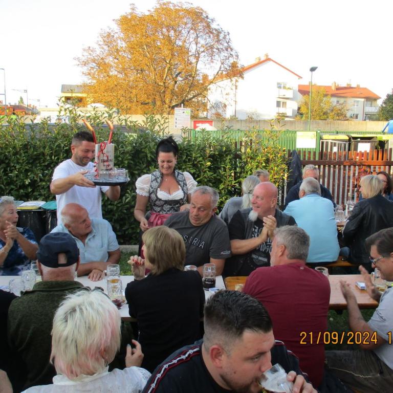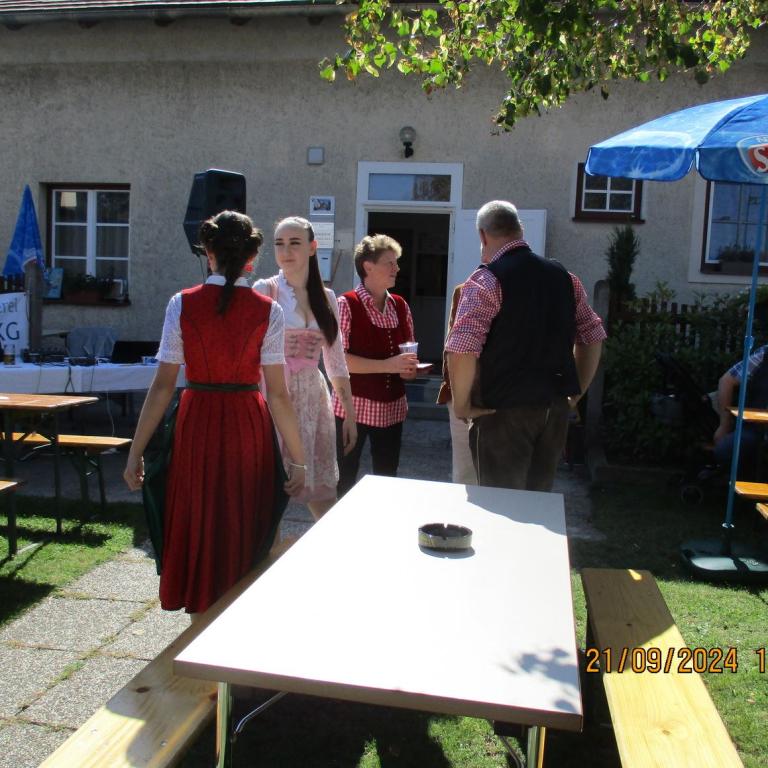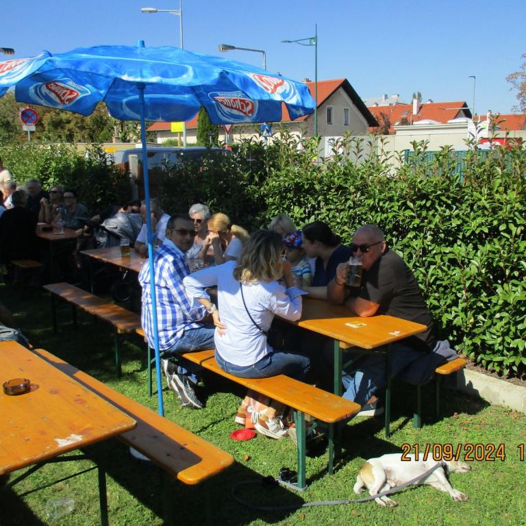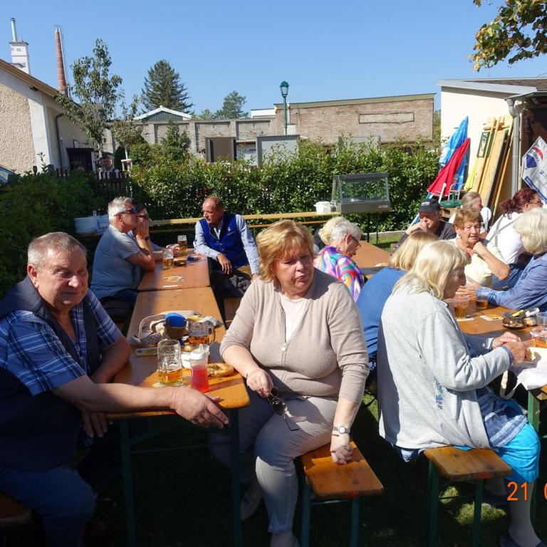 Nach der Eröffnung und dem Fassanschlagen haben sich unsere Gäste bei dem umfangreichen Mittagsmenü mit Spanferkel, Sauerkraut und Knödel sowie Grillhendl gelabt.