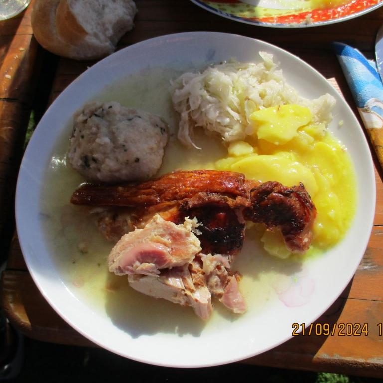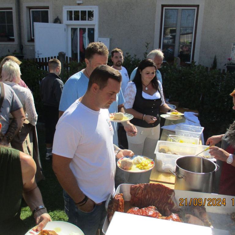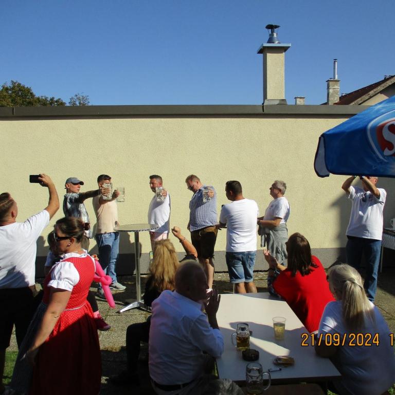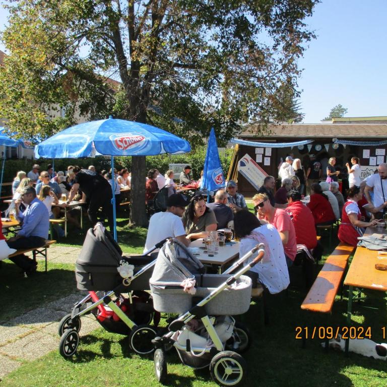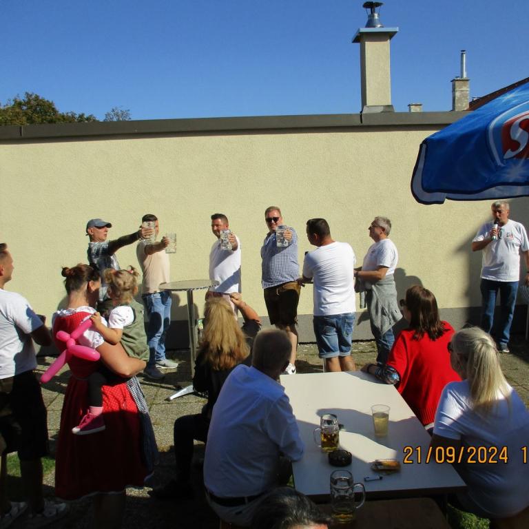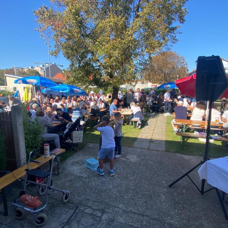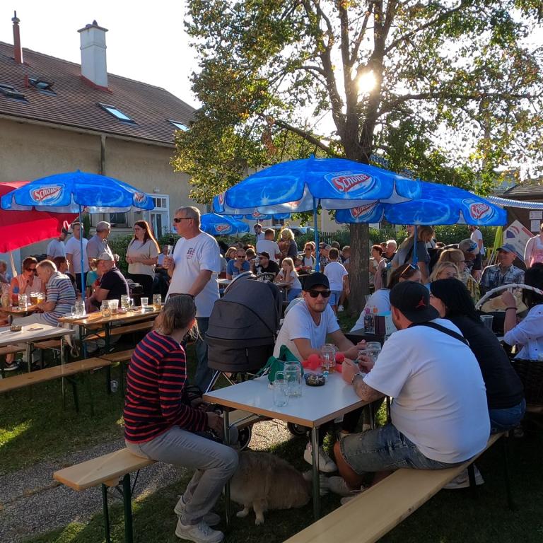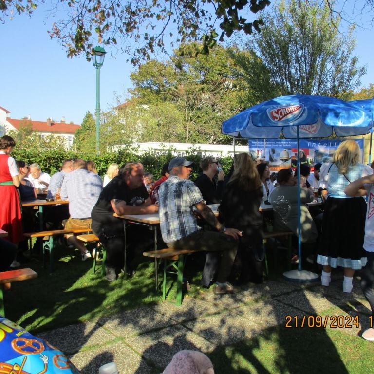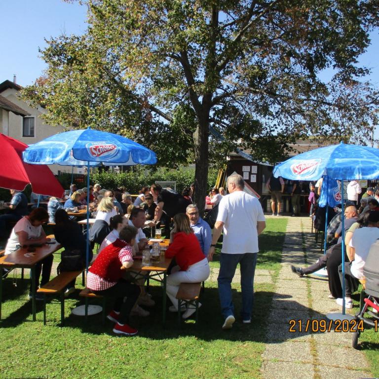 Nach der Eröffnung und dem Fassanschlagen haben sich unsere Gäste bei dem umfangreichen Mittagsmenü mit Spanferkel, Sauerkraut und Knödel sowie Grillhendl gelabt.