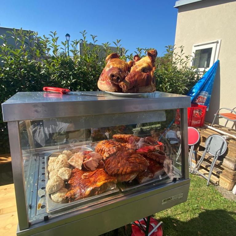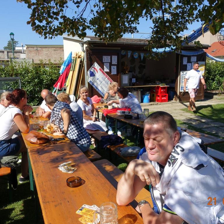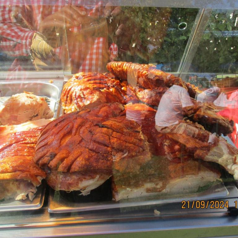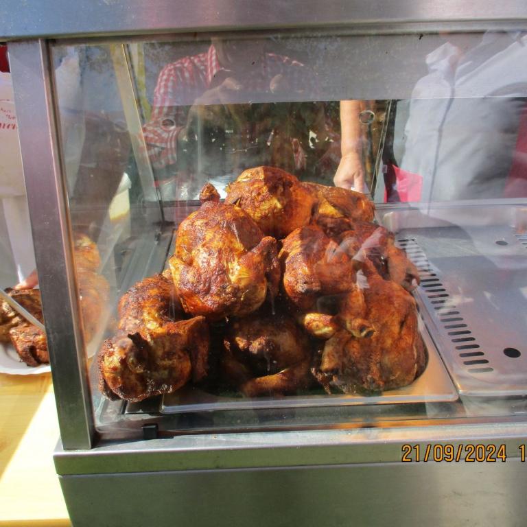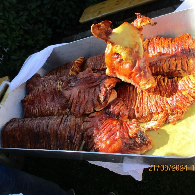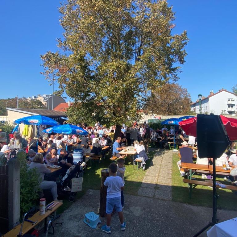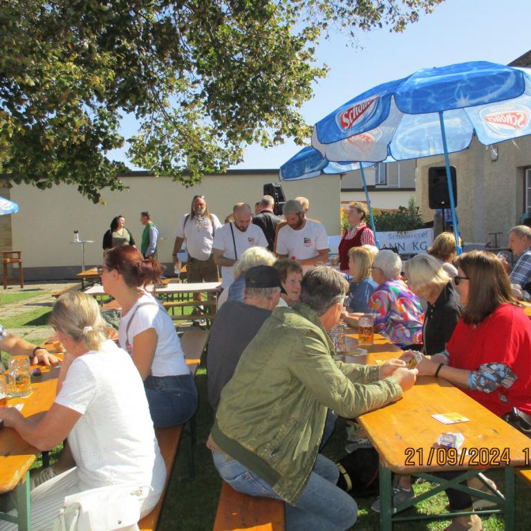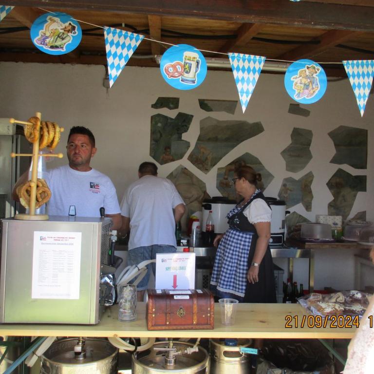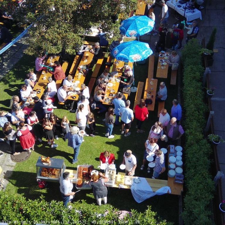 Nach der Eröffnung und dem Fassanschlagen haben sich unsere Gäste bei dem umfangreichen Mittagsmenü mit Spanferkel, Sauerkraut und Knödel sowie Grillhendl gelabt.