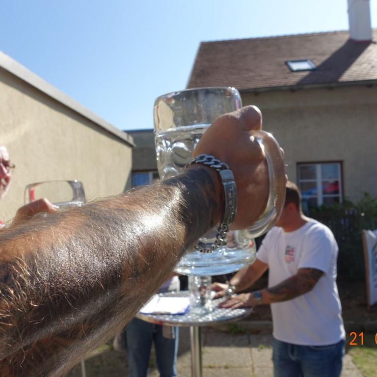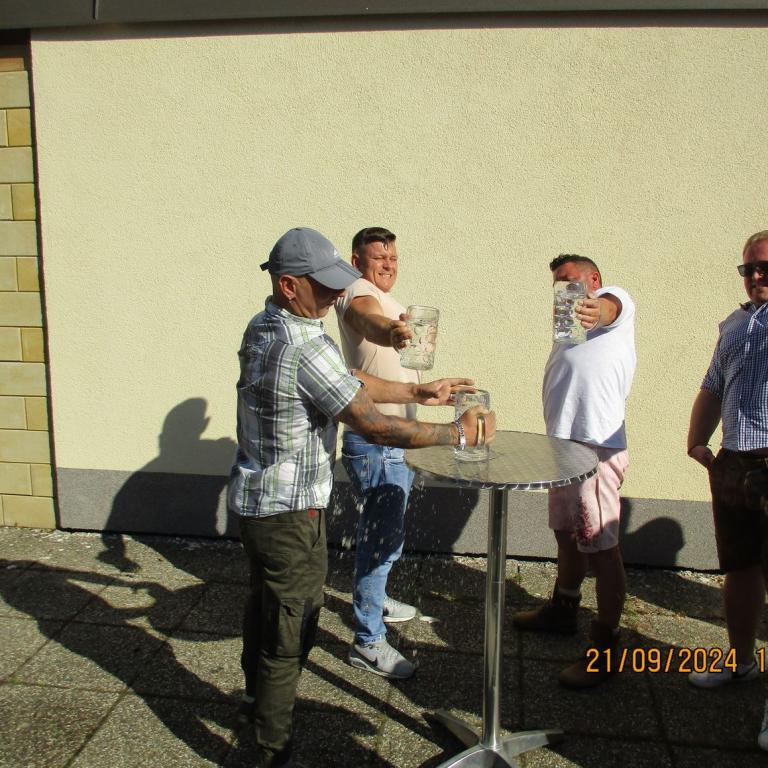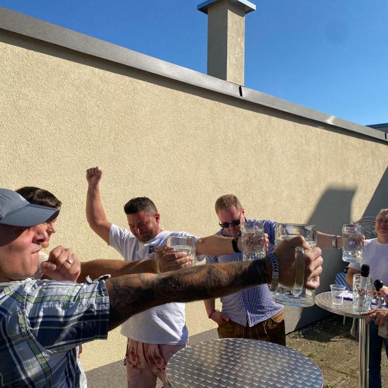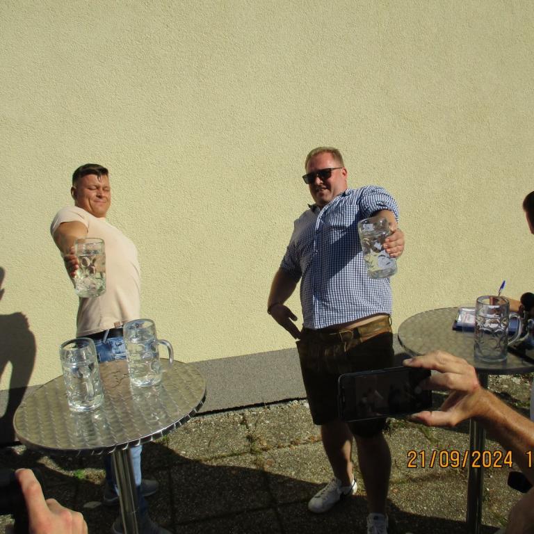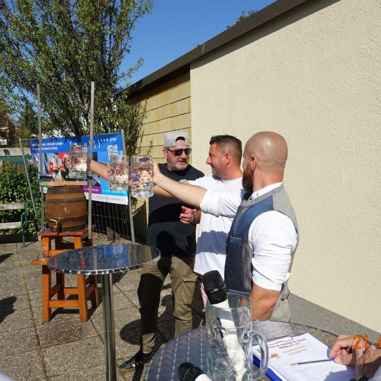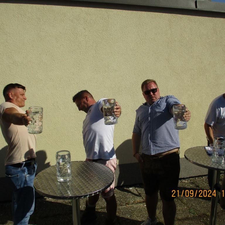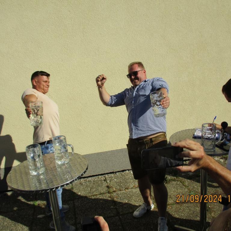 Nachdem sich die Burschen gestärkt hatten, ging es an das Maßkrugstemmen. Es wurde bis zur Erschöpfung gekämpft.
