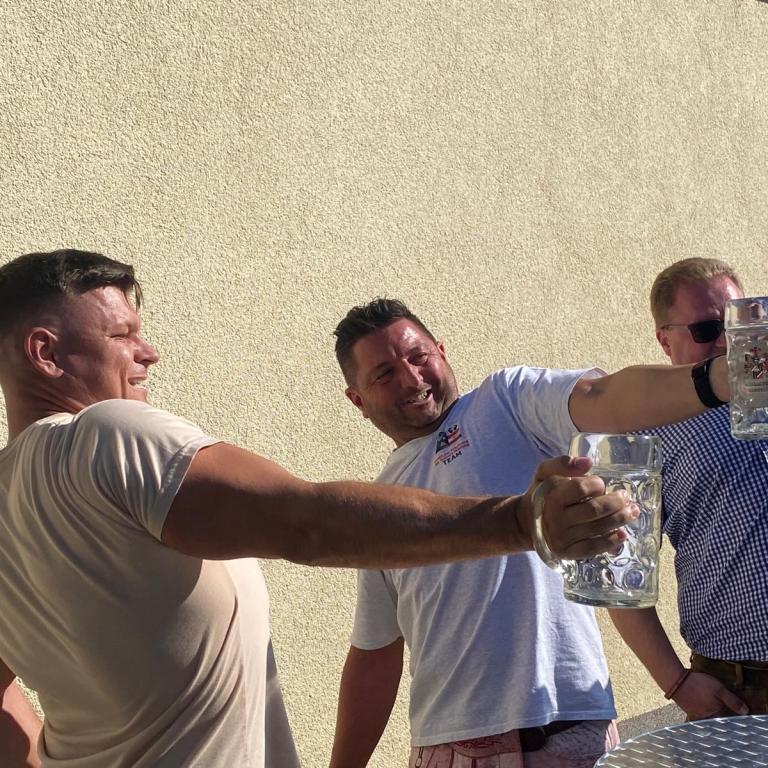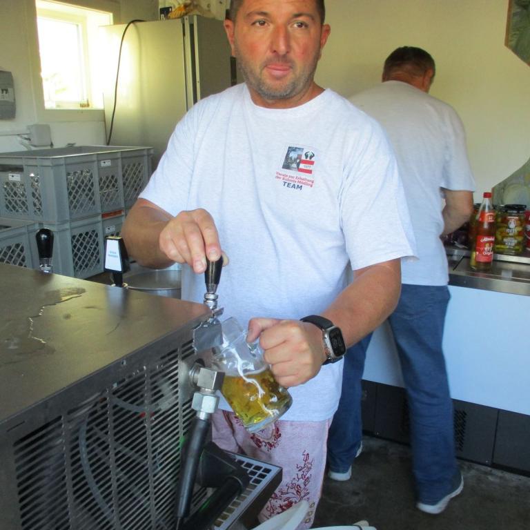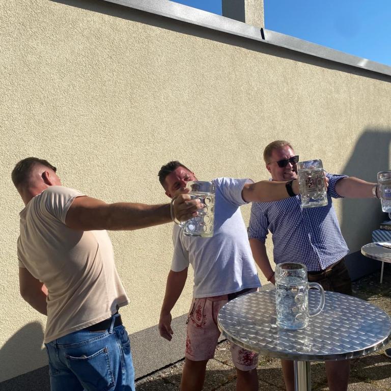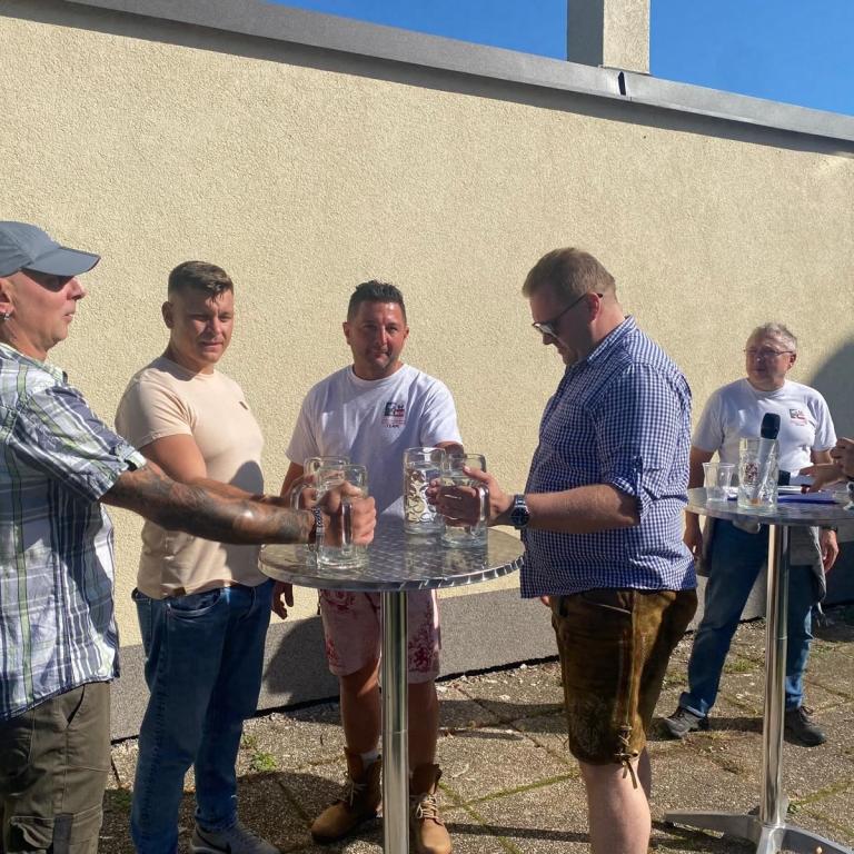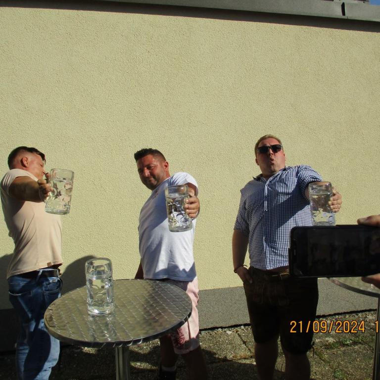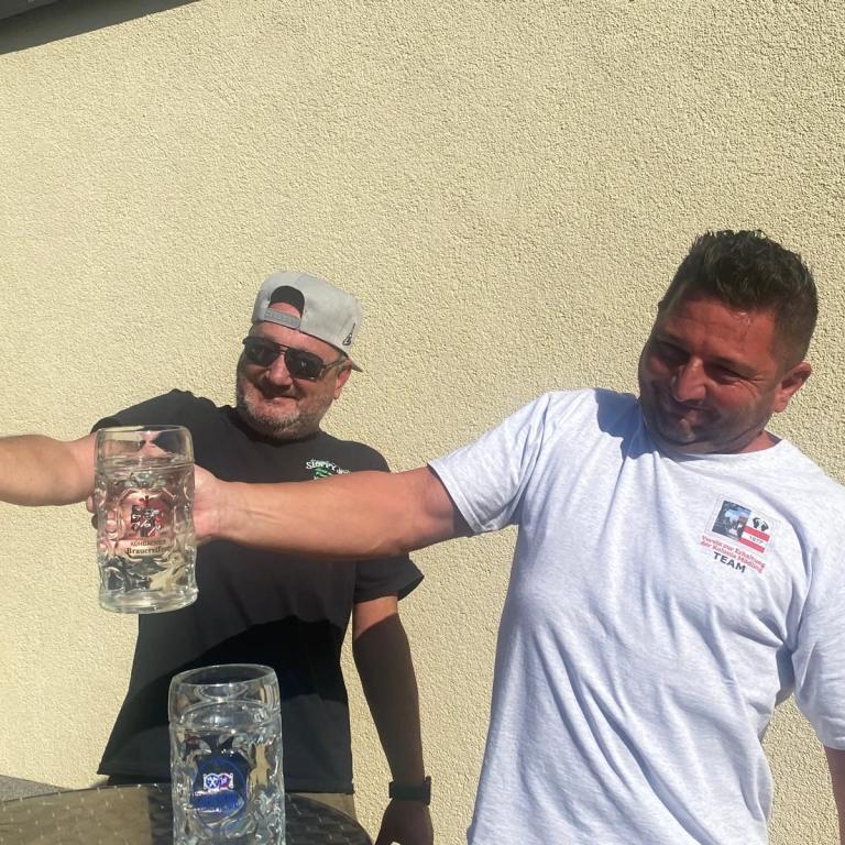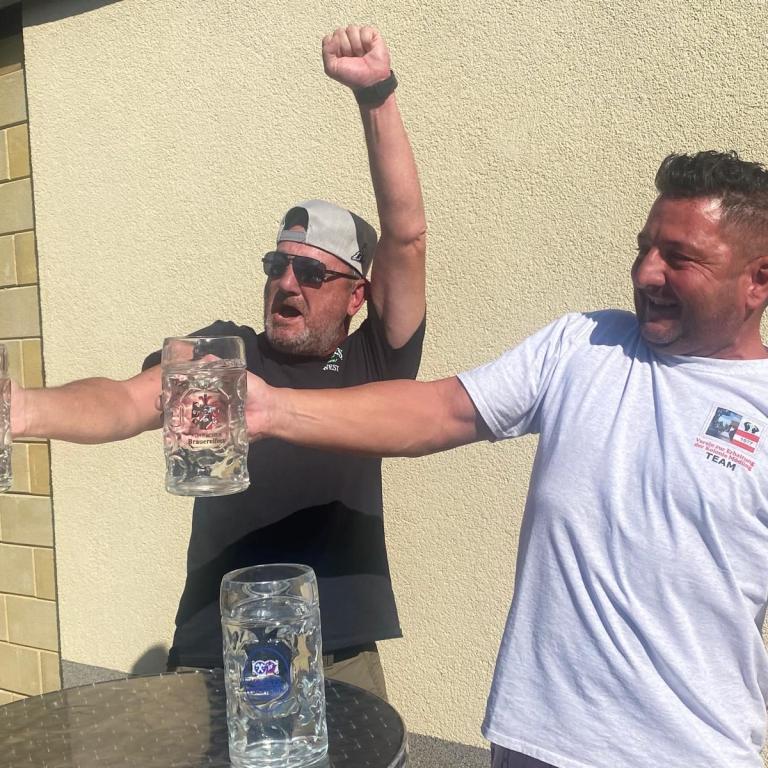 Nachdem sich die Burschen gestärkt hatten, ging es an das Maßkrugstemmen. Es wurde bis zur Erschöpfung gekämpft.