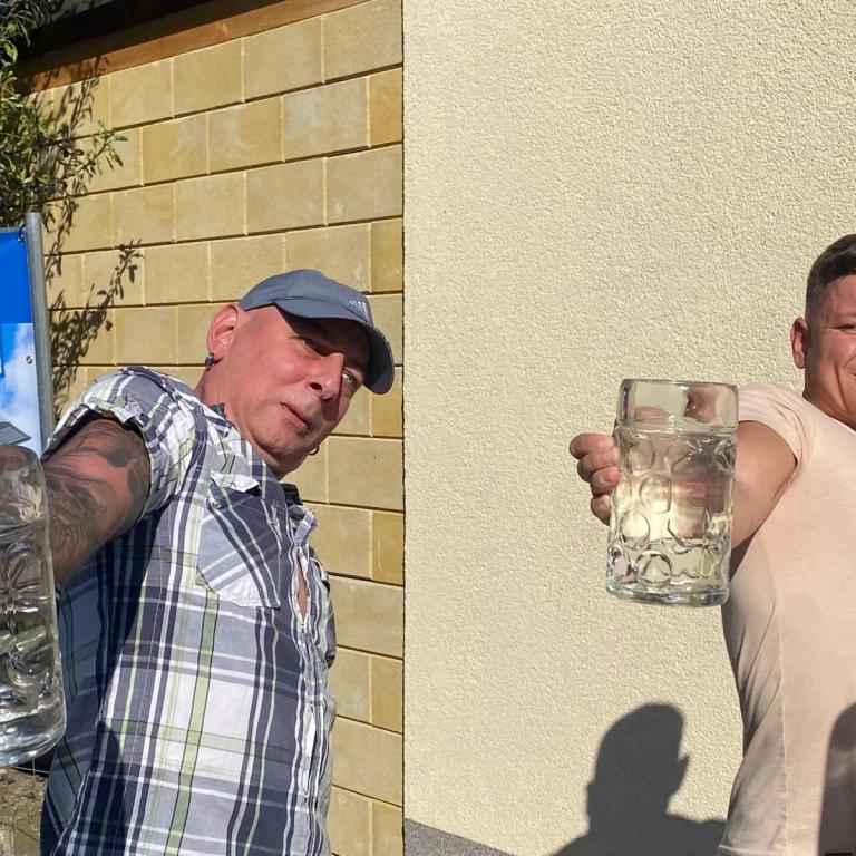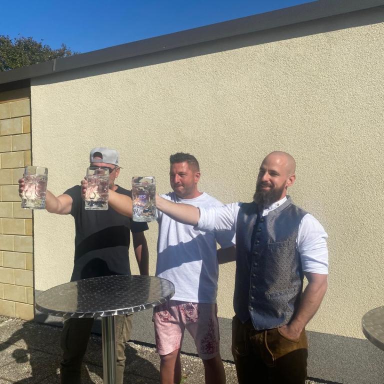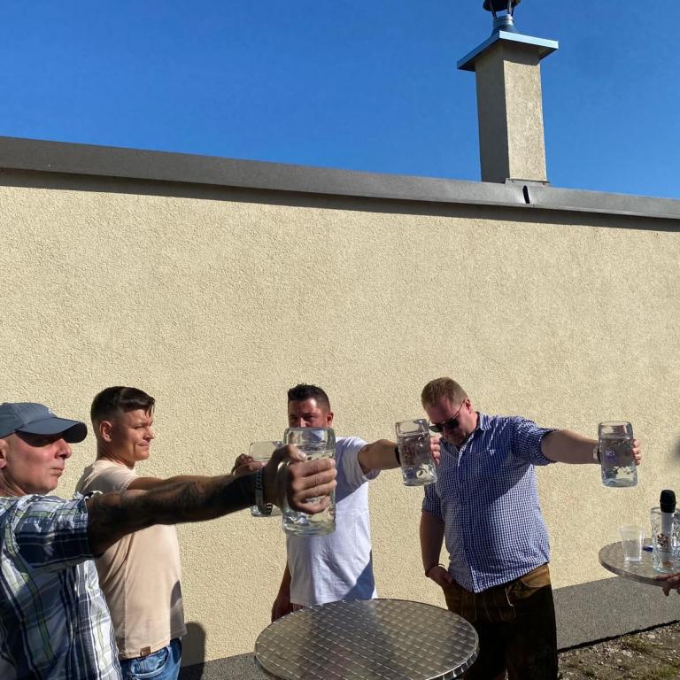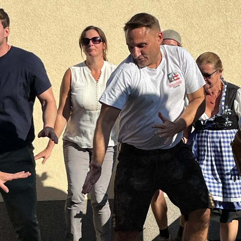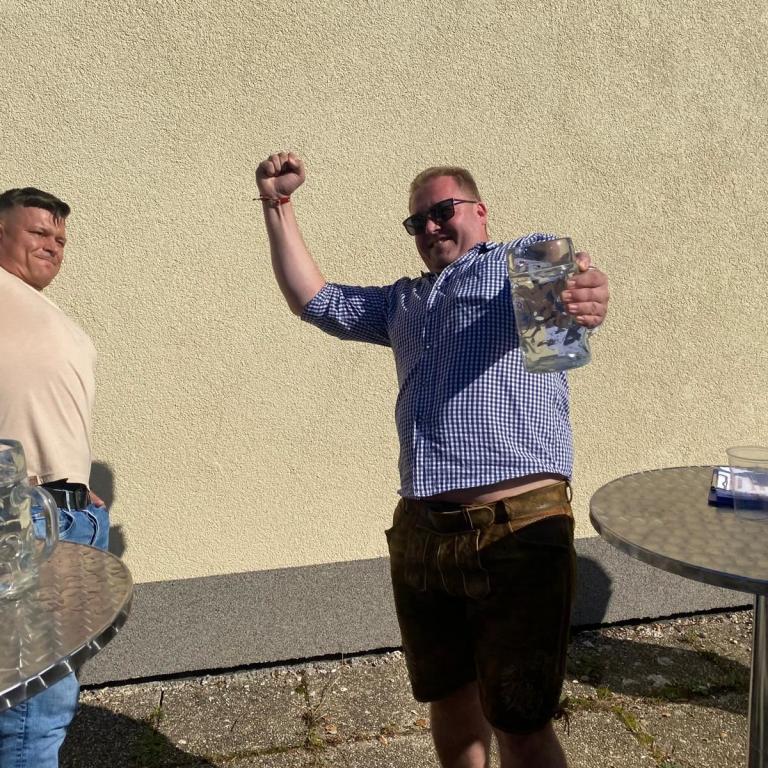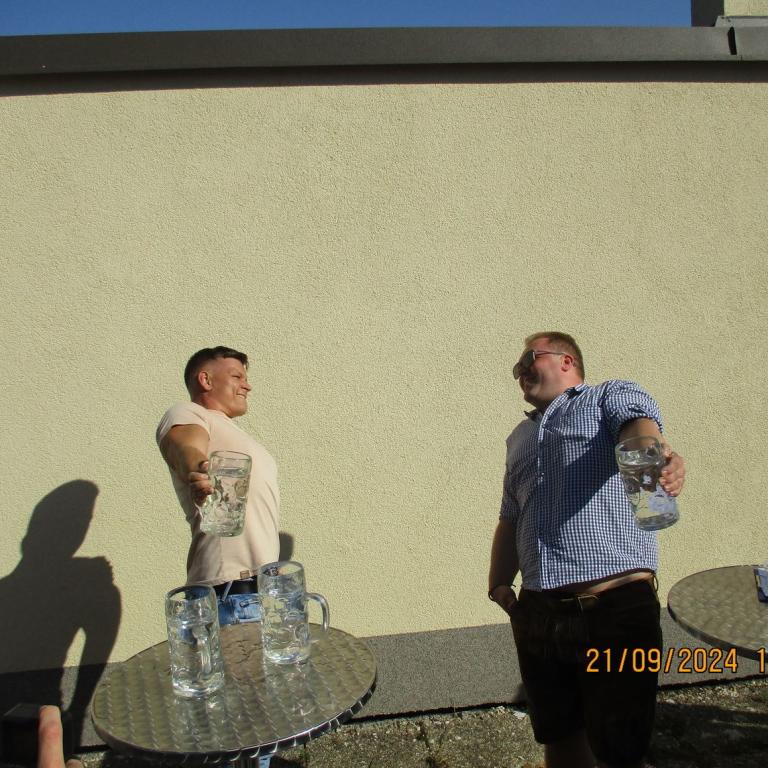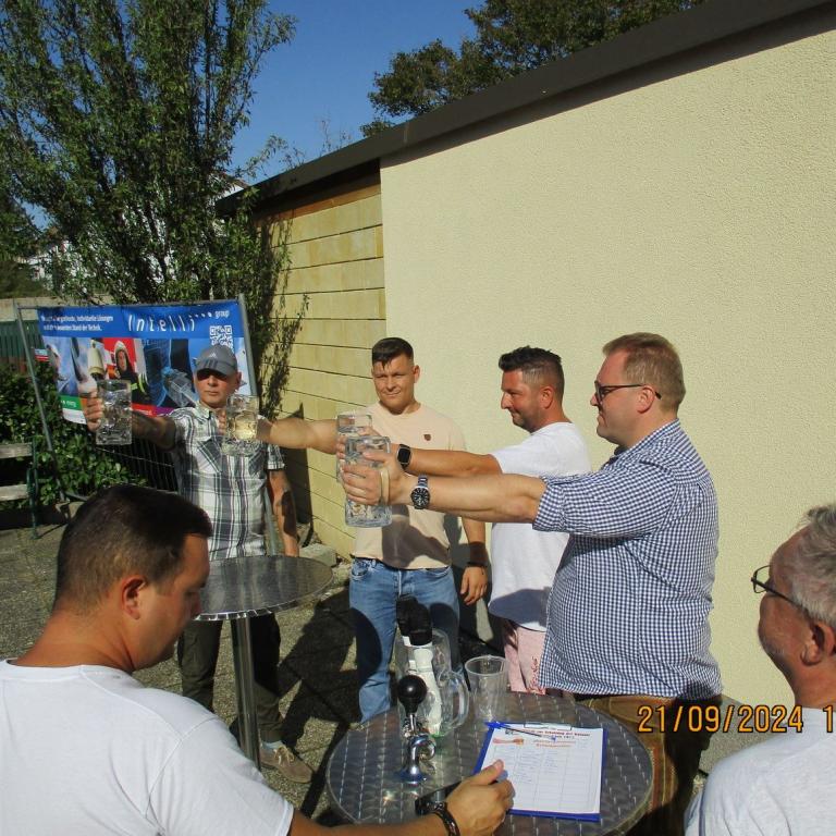 Nachdem sich die Burschen gestärkt hatten, ging es an das Maßkrugstemmen. Es wurde bis zur Erschöpfung gekämpft.