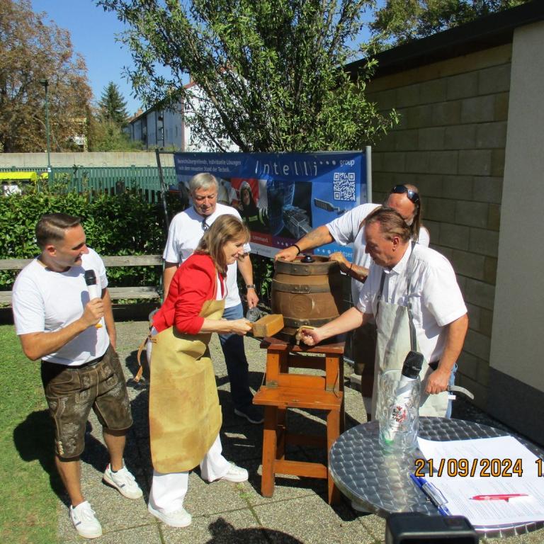 Obmann Stv. Herbert Huber eröffnete die Veranstaltung und Vizebürgermeisterin Silvia Drechsler durfte das Festbier anschlagen.