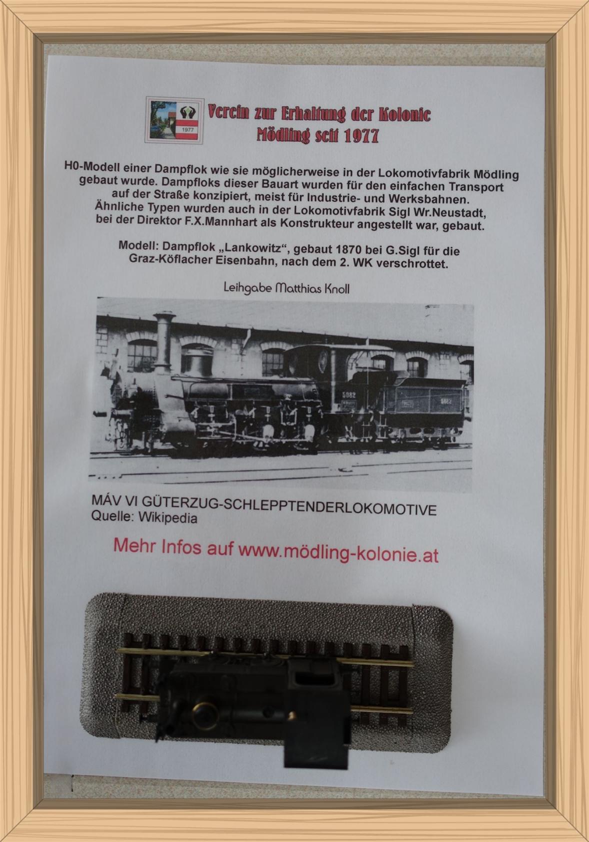 Modell: Dampflok „Lankowitz“, gebaut 1870 bei G.Sigl für die Graz-Köflacher Eisenbahn, nach dem 2. WK verschrottet.