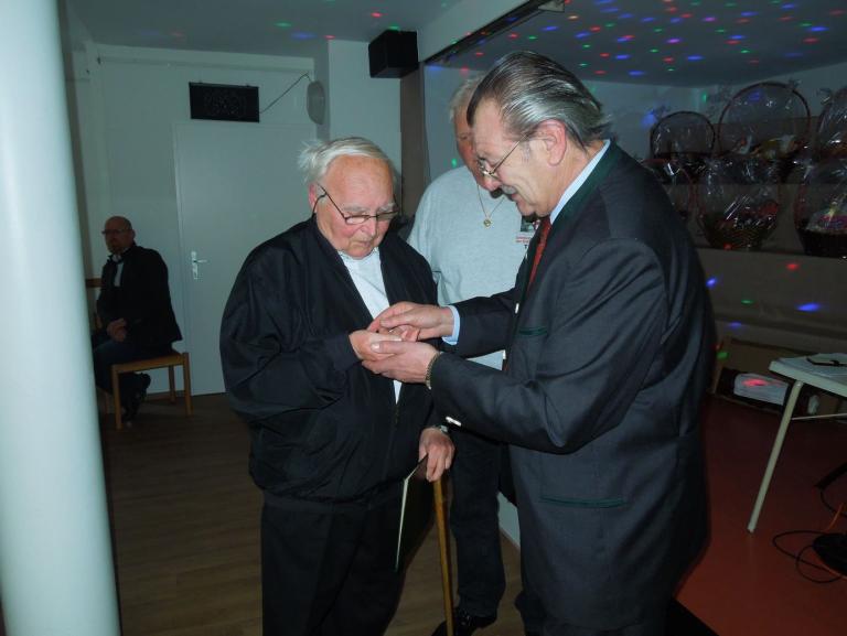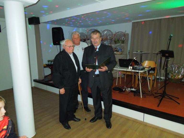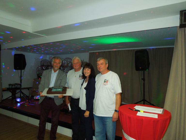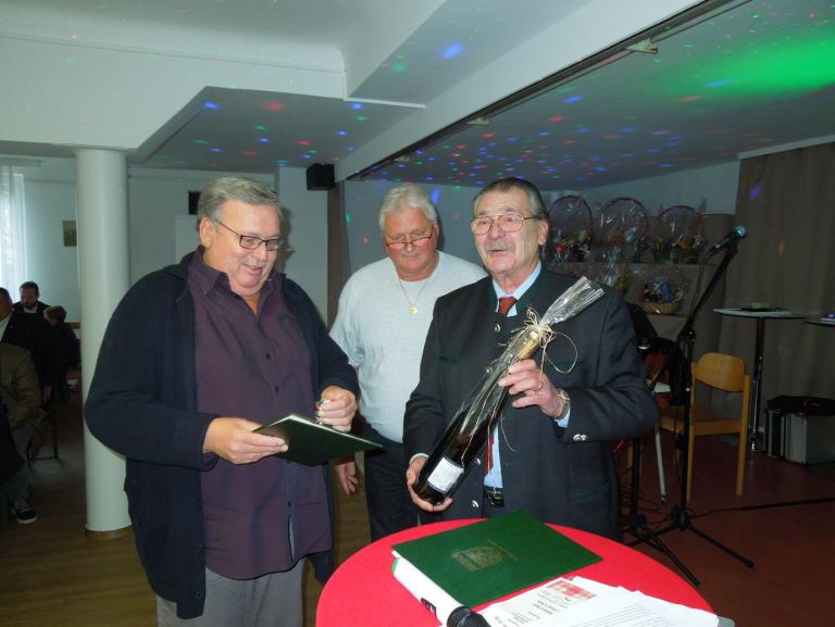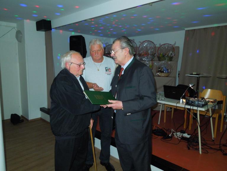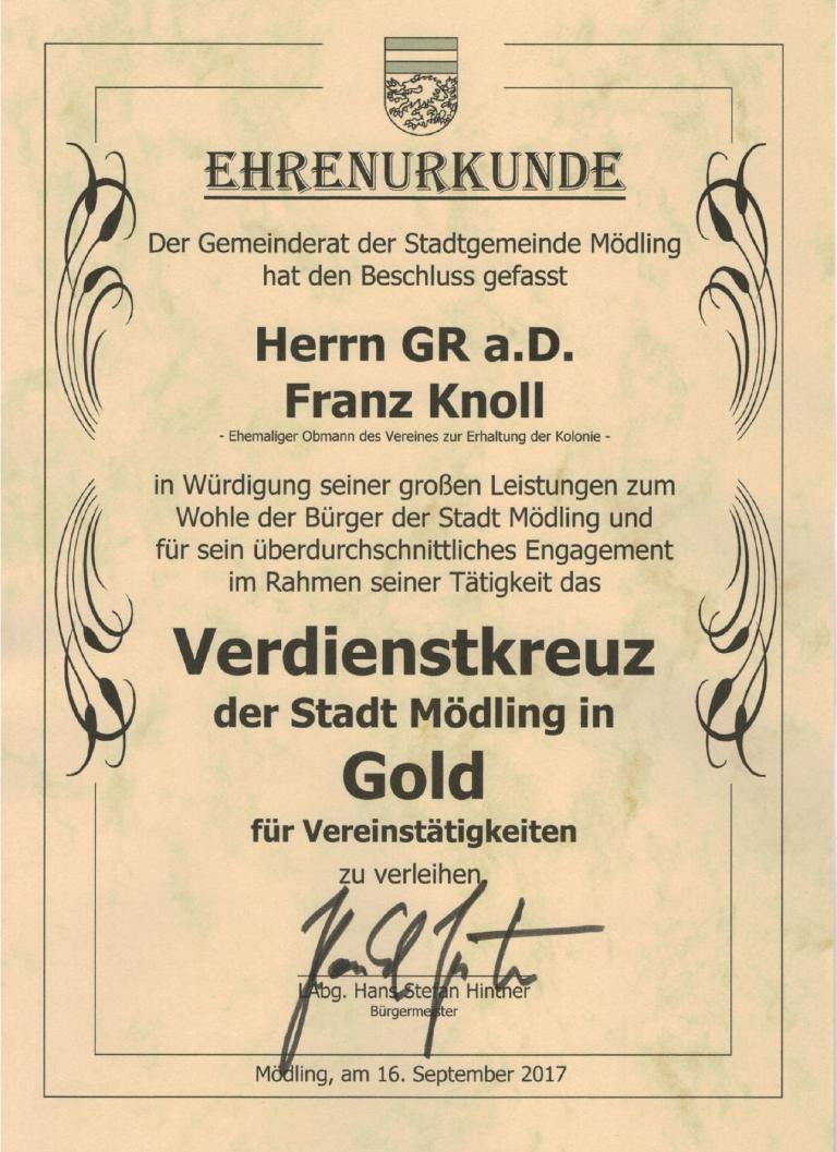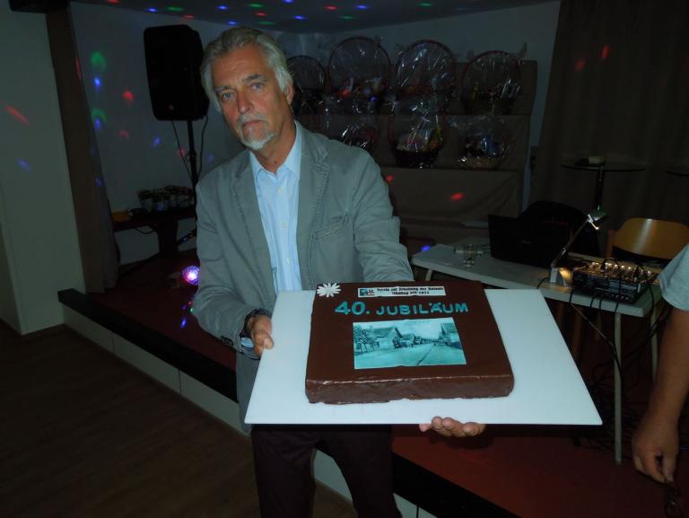 Als Vertreter der Gemeinde überreichte Herr KommR Ferdinand Rubel, nach dem verlesen einer Laudatio, an das Gründungsmitglied und langjährigen Obmann Franz Knoll die Verdienstnadel für Vereinstätigkeiten in Gold sowie dem Schriftführer Gerhard Stelzl die Verdienstnadel für Vereinstätigkeiten in Silber. Der geschäftsführende Vorstand, Obmann der Mödling - Gemeinnützige Bau- und Wohnungsgenossenschaft für Mödling reg. Gen.m.b.H. Herr Komm.-Rat Andreas Holzmann überreichte im Anschluss daran dem langjährigen Obmann und Vorstandsmitglied Robert Teufelbauer den Ehrenring in Gold. Bei der Ansprache wurde die gute Zusammenarbeit des Vereins mit der Genossenschaft hervorgehoben und erwähnt dass die Kolonie, welche seit 1920 im Eigentum der Genossenschaft ist, nur aus den Erhaltungsbeiträgen saniert wurde. Am Ende des offiziellen Teiles überreichten Gemeinderätin Frau Silvia Drechsler und Gemeinderat Herr Leopold Oswald dem Obmann Karl Klugmayer eine Torte zum 40 jährigen Bestehen des Vereines.