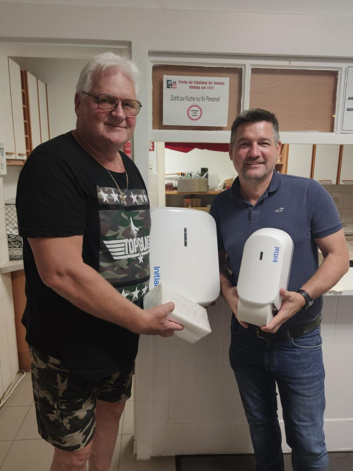 Anlässlich unserer Vorstandssitzung am 3.9.2024 überreichte unser Mitglied Thomas Holzmann, Managing Director der Fa. Rentokil Initial GmbH in Wr. Neudorf, ein großes Paket an Sanitärzubehör an unseren Obmann Karl Klugmayer als Verwalter des Buchingerheimes.