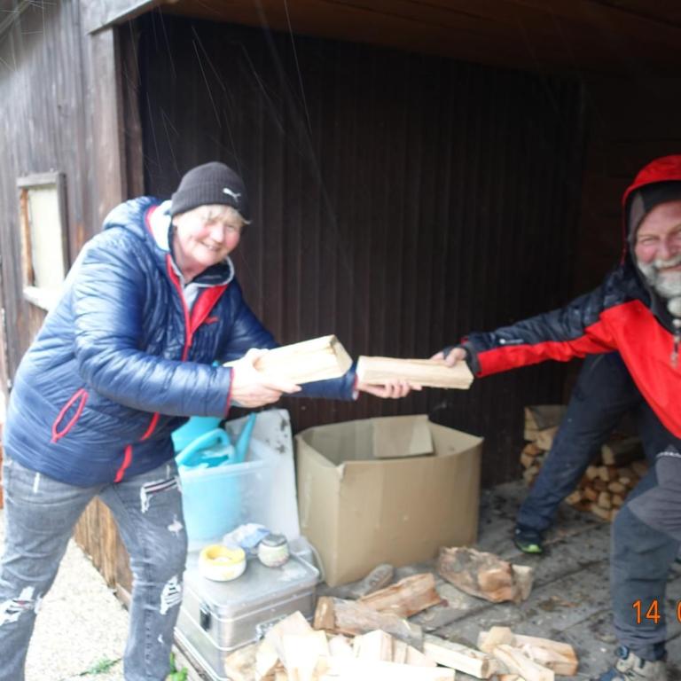Wie vom Vorstand angekündigt wurde ein Teil der bei der letzten Veranstaltung eingenommenen Spenden als Holzspende in der Kolonie verwendet. Martina Murowatz freute sich über 2 FM Buchenholz womit die Stube weiterhin warm bleibt.