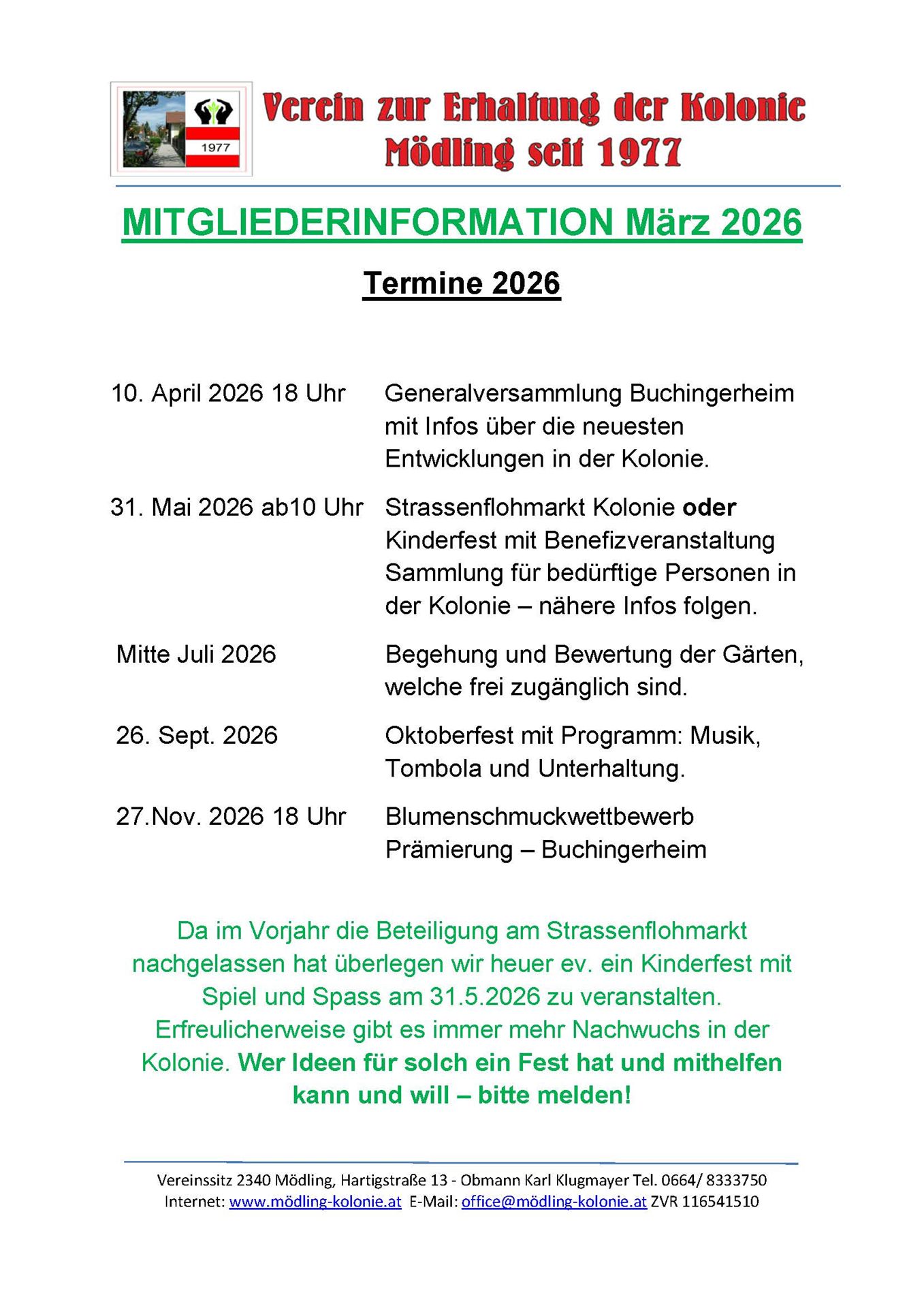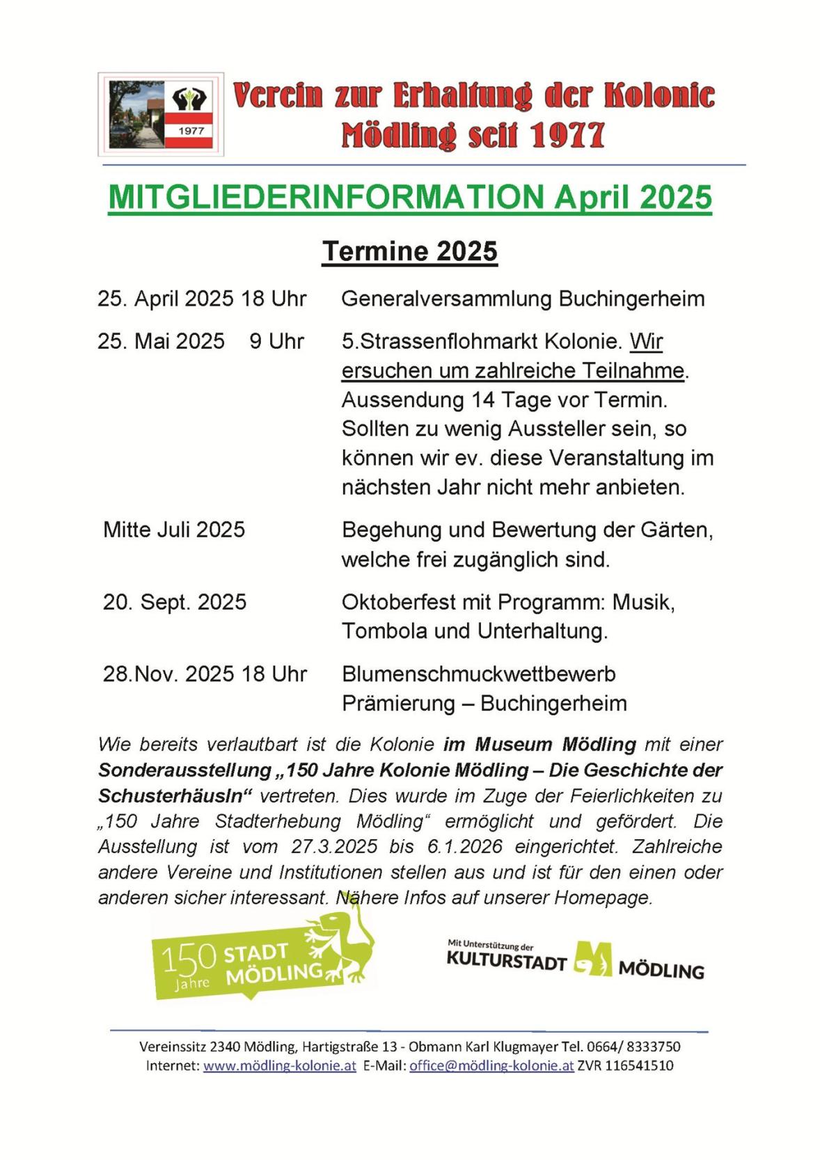 Am Samstag den 11. Oktober 2025 fand die Preisverleihung des kreativen Kinder- u. Jugendwettbewerbs des Museum Mödling statt. Zum Thema "Das macht für mich meine Stadt aus" wurde im Zuge der 150 Jahres Feierlichkeiten eine Sonderausstellung eingerichtet. 205 Kinder und Jugendliche haben mit 109 Arbeiten an dem Wettbewerb teilgenommen. Zwei Arbeiten von Kindern aus der Kolonie kamen in die engere Auswahl und wurden in der Ausstellung ausgehängt........